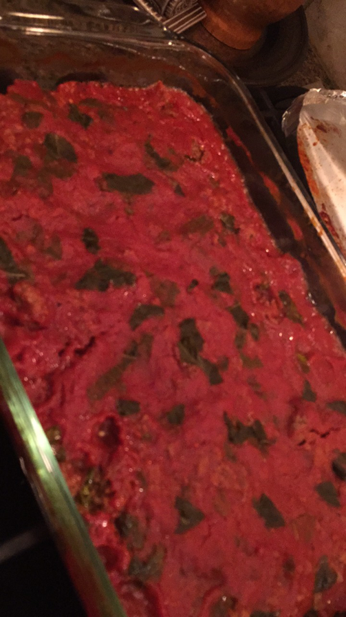I also added a little fresh basil on top of the dish. Covered dish with foil and baked at 350 for 45mins.